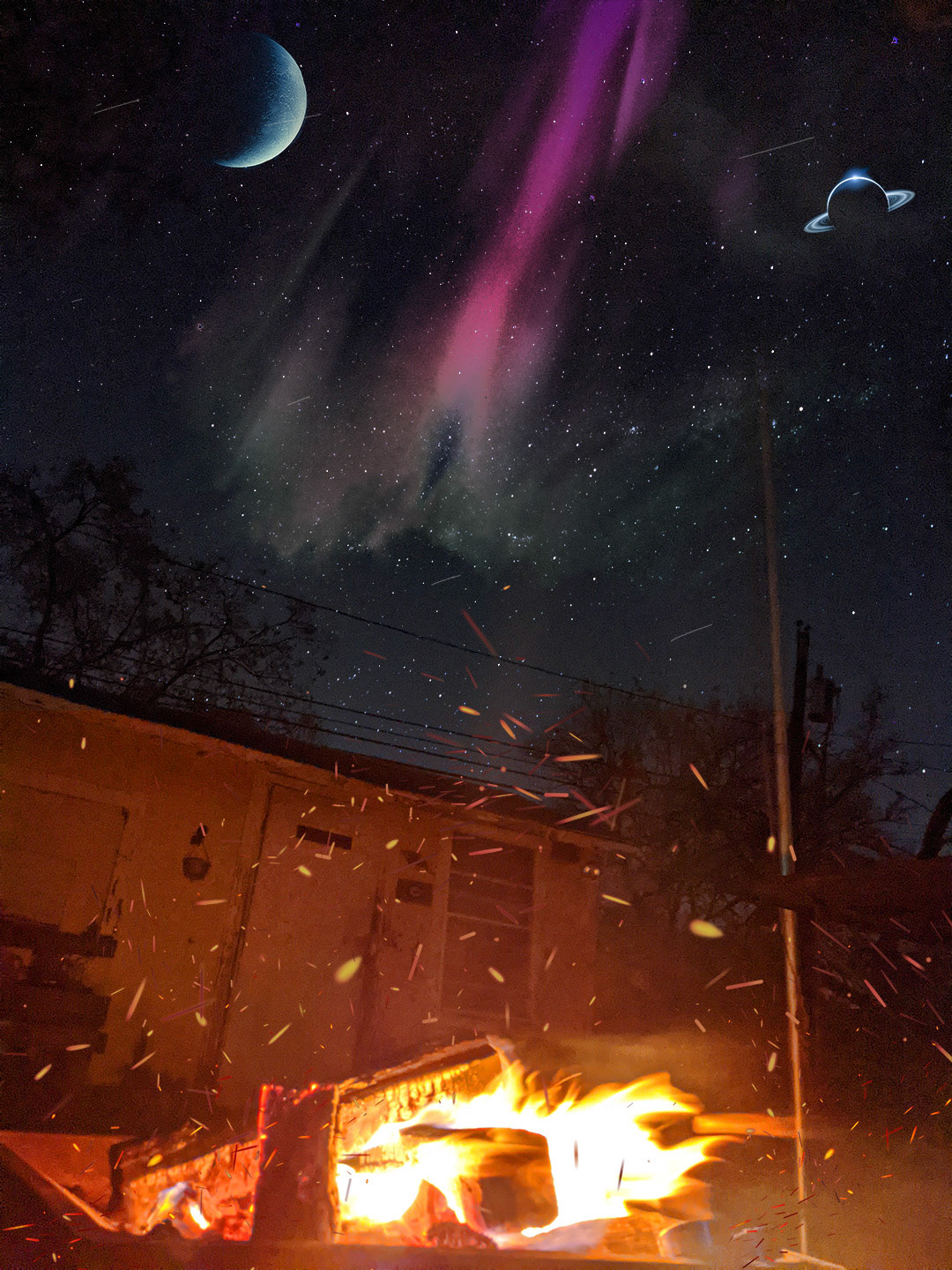 Beautiful landscape snow mountains at night on blue cloud and star background. Leh, Ladakh, India.(Double Exposure)